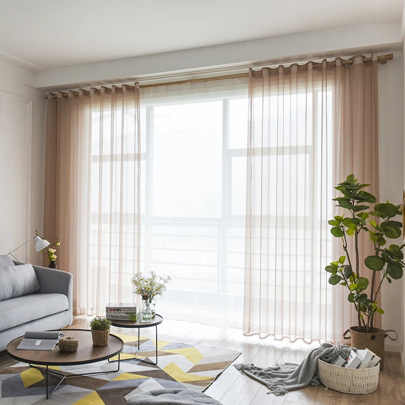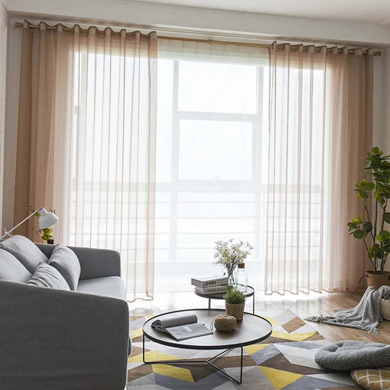 Однотонные современные тюлевые шторы из прозрачной вуали для гостин...