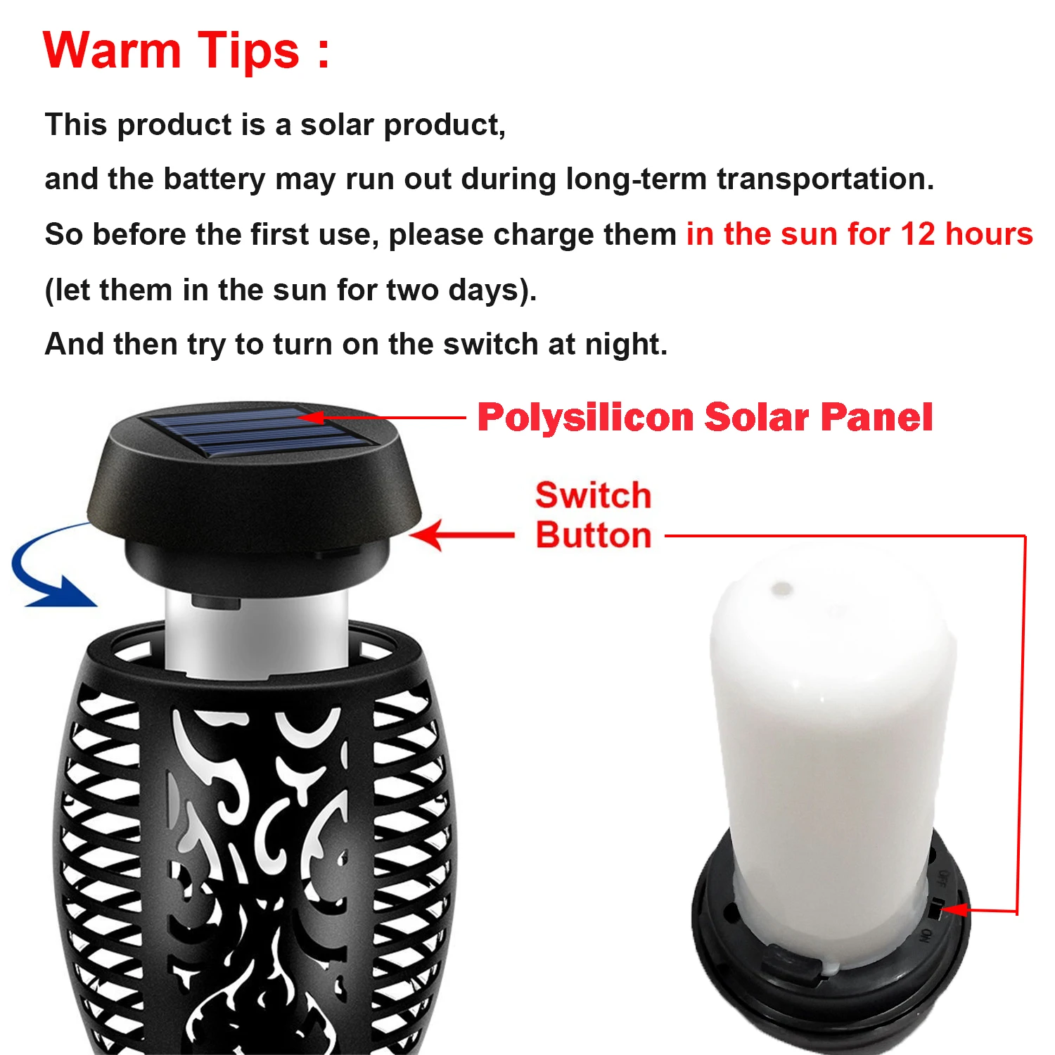 Фонарик на солнечной батарее, уличный светодиодный водонепроницаемый светильник с мерцающим пламенем, украшение для сада, ландшафта, газона, дорожек, Декор, Ландшафтная лампа для газона
