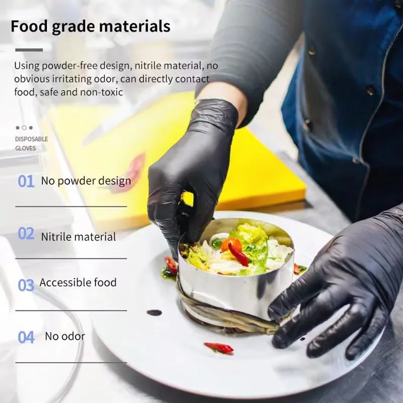 Нитриловые одноразовые перчатки для еды, латексные виниловые черные перчатки без порошка, кухонные посудомоечные машины, ручные черные/синие перчатки, 100 шт.