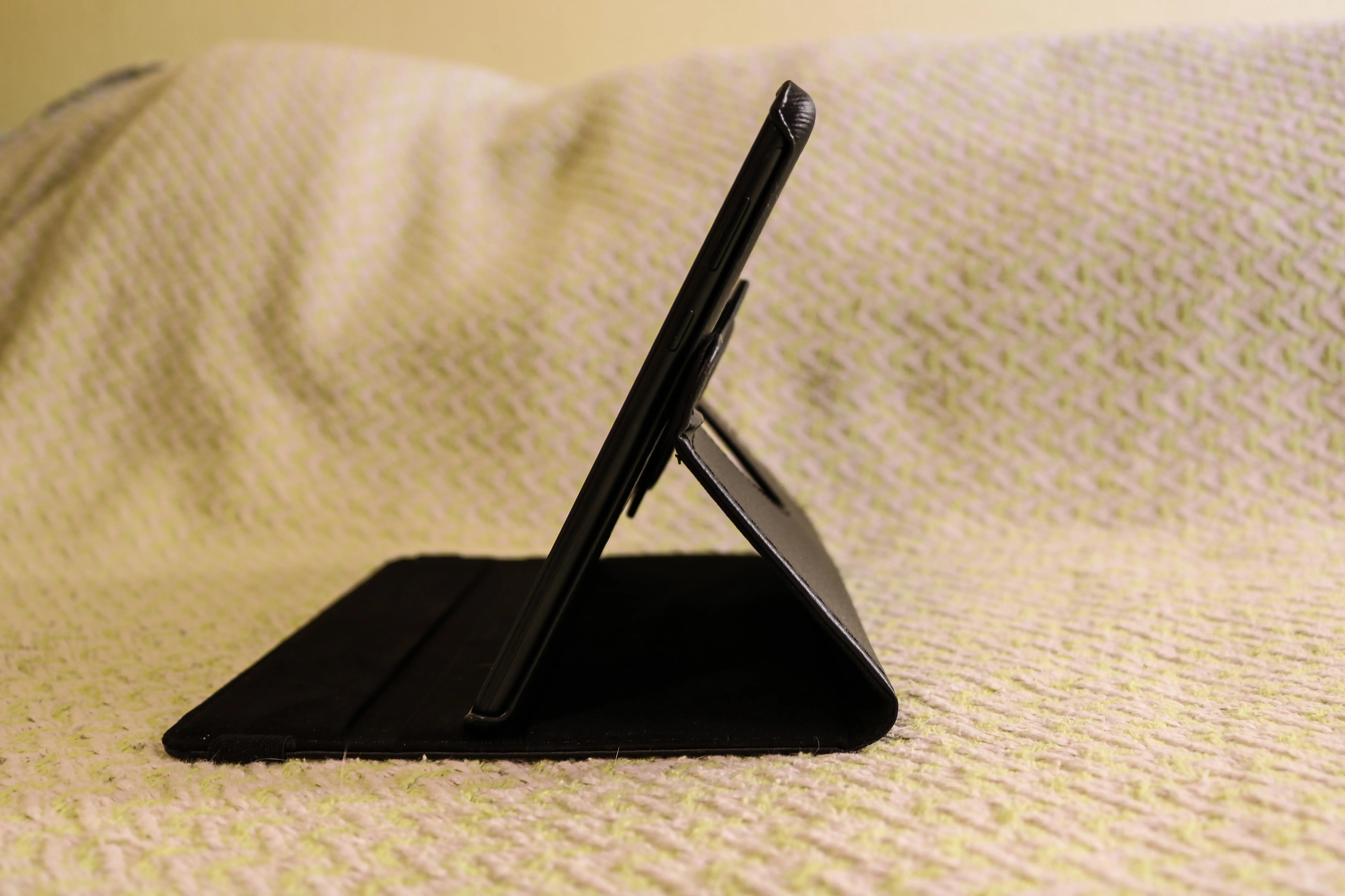 Я только что получил его, и это мое первое впечатление. Чехол соответствует описанию. Это красиво и практично. Все работает хорошо. Ремешок для лучшего захвата. Довольно стабильный, когда он стоит в горизонтальном положении. Синтетическая кожа выглядит отлично. Нет запаха. До сих пор, я доволен. Я узнаю, как это происходит и добавлю еще один отзыв в месяц. Вот несколько фотографий.
