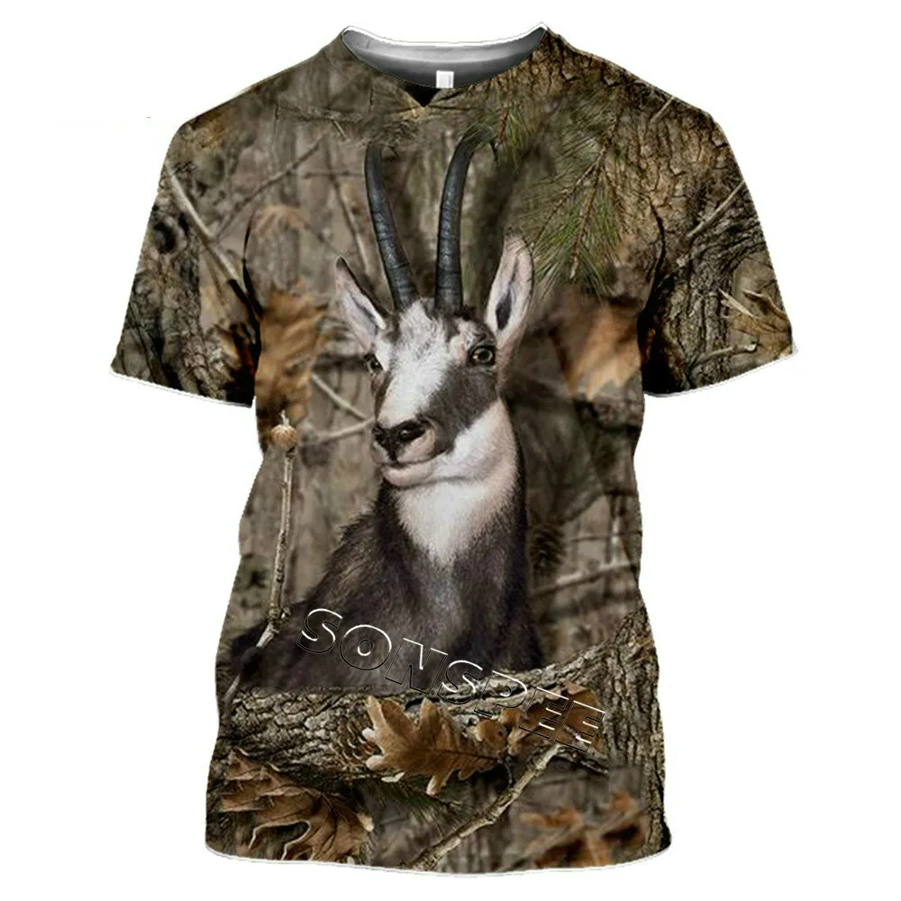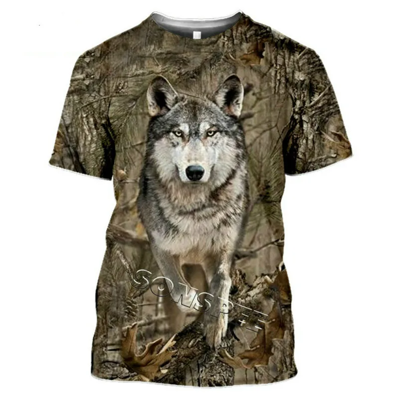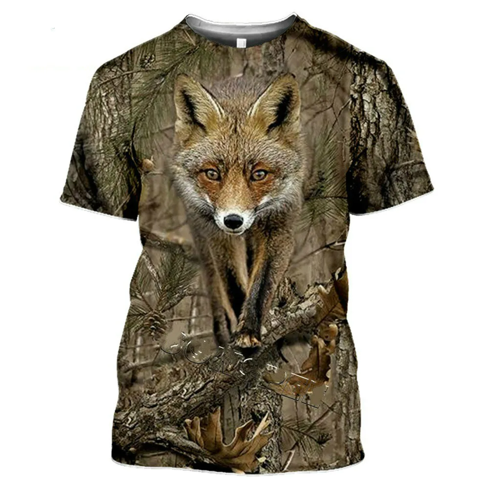 Футболка мужская и женская камуфляжная, повседневная короткая модная уличная одежда с объемным рисунком животных, кролика, оленя, волка, утки, лето