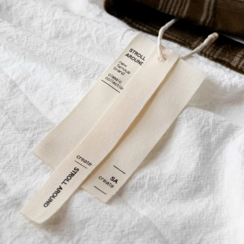 Наши швейные этикетки имеют только хлопчатобумажную ленту, которая не была отрезана.