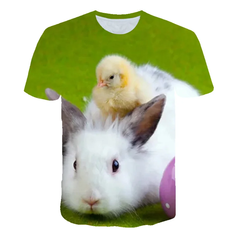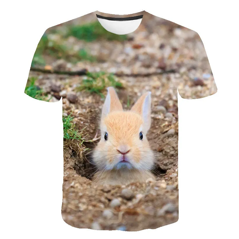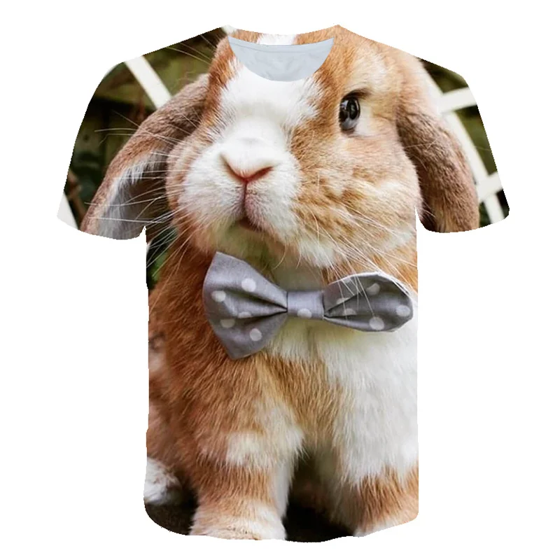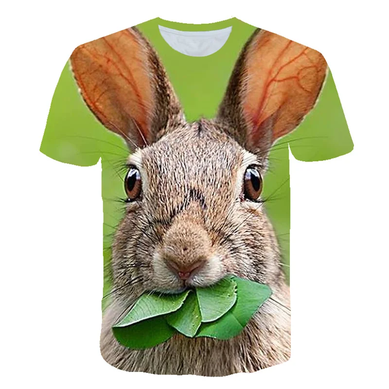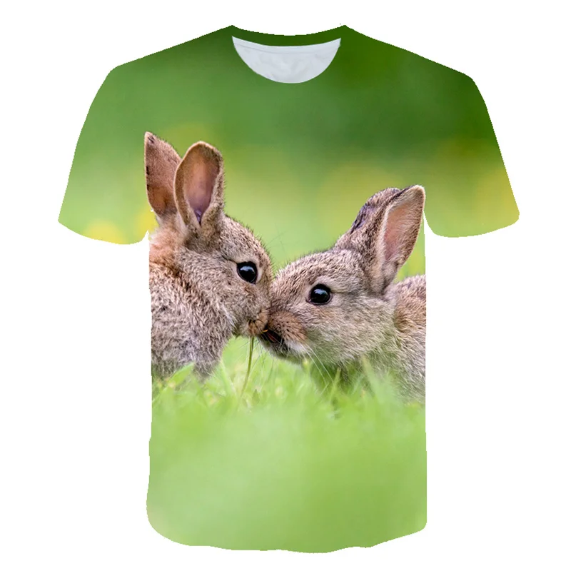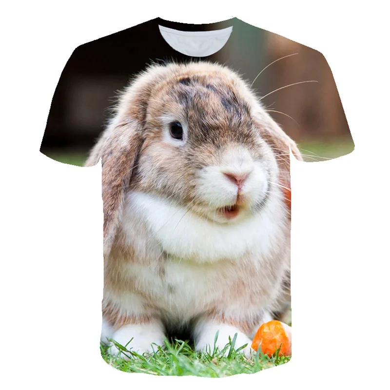 Летняя 3D футболка для мальчиков и девочек 2021, Большая одежда с рисунком, футболка с кроликом,