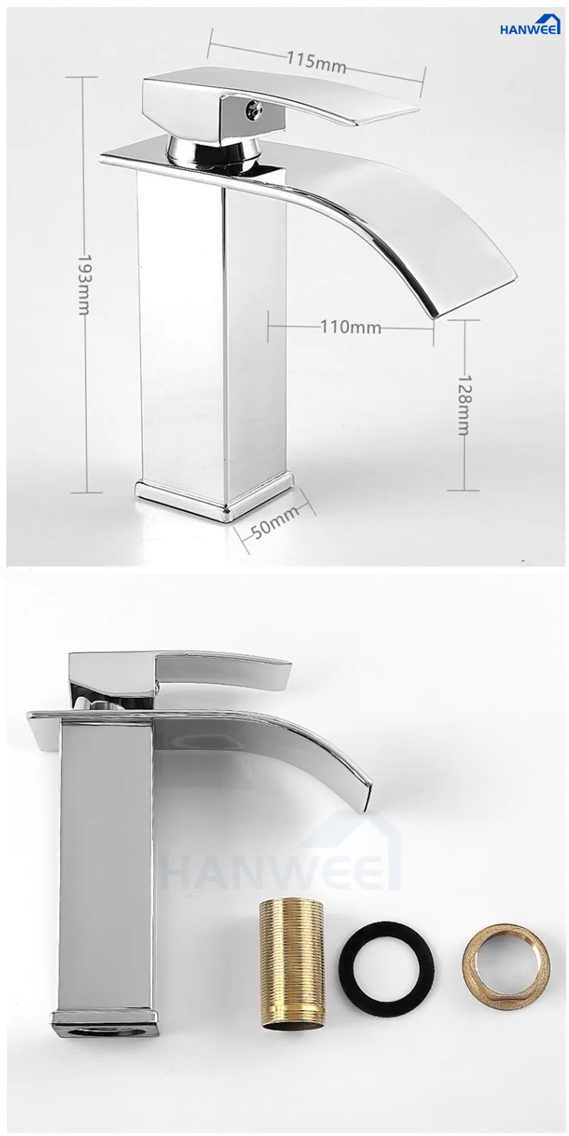 Смеситель для ванной комнаты Hanwee, кран для раковины, водопад, крепление на раковину, холодная и горячая вода, латунь, хром