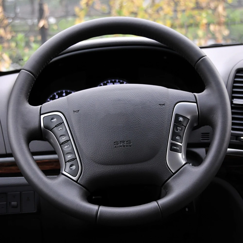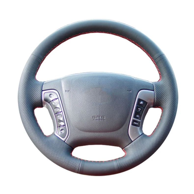 Сделай сам индивидуальный автомобильный чехол на руль со строчкой для Hyundai Santa Fe 2006-2012 кожаный плетеный чехол для рулевого колеса
