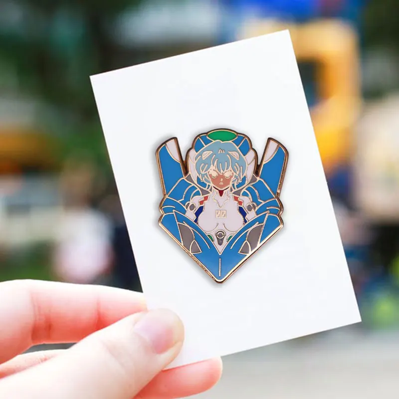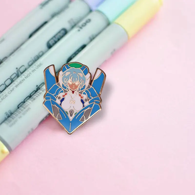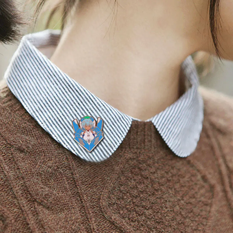 Голубые волосы аниме девушка Рей Аянами эмалированная брошь-Кнопка ...