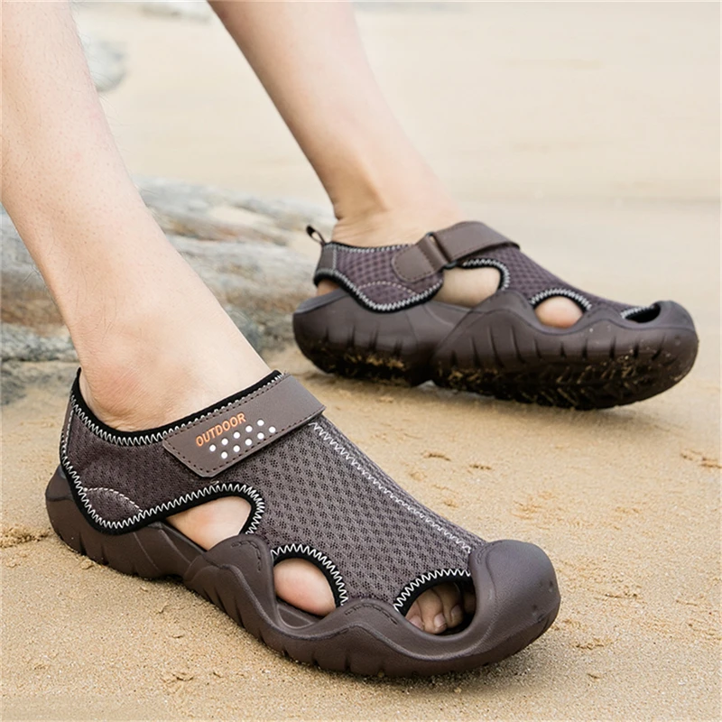 Сандалии мужские с закрытым носком, пляжная обувь на толстой подошв...