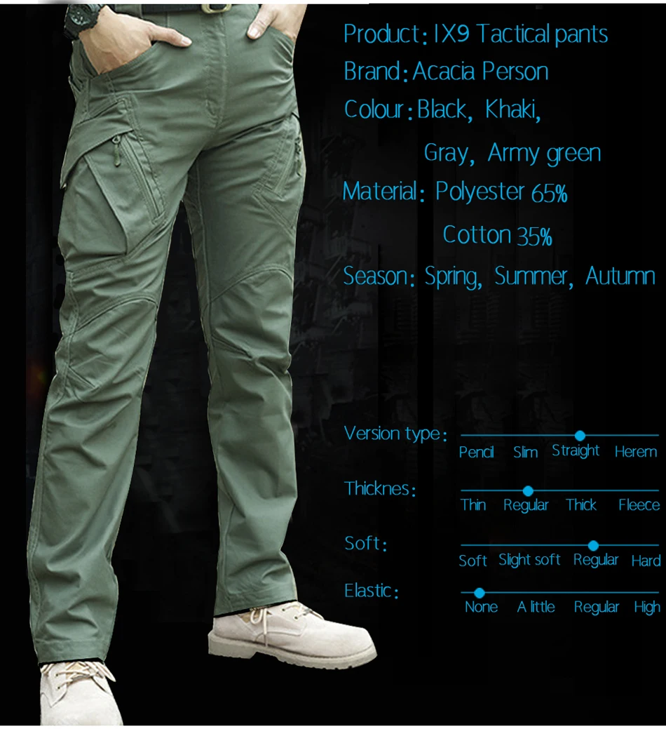 Брюки IX9 мужские тактические водонепроницаемые, боевые штаны SWAT,...