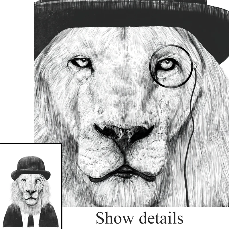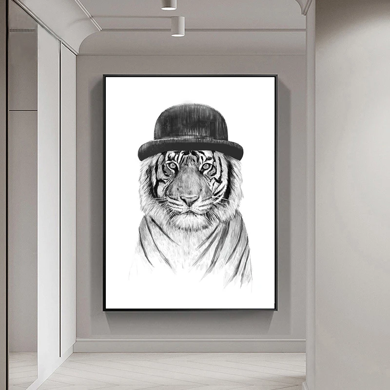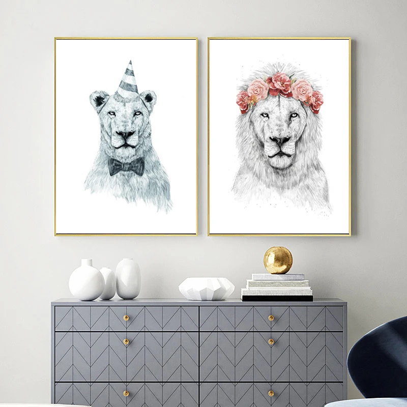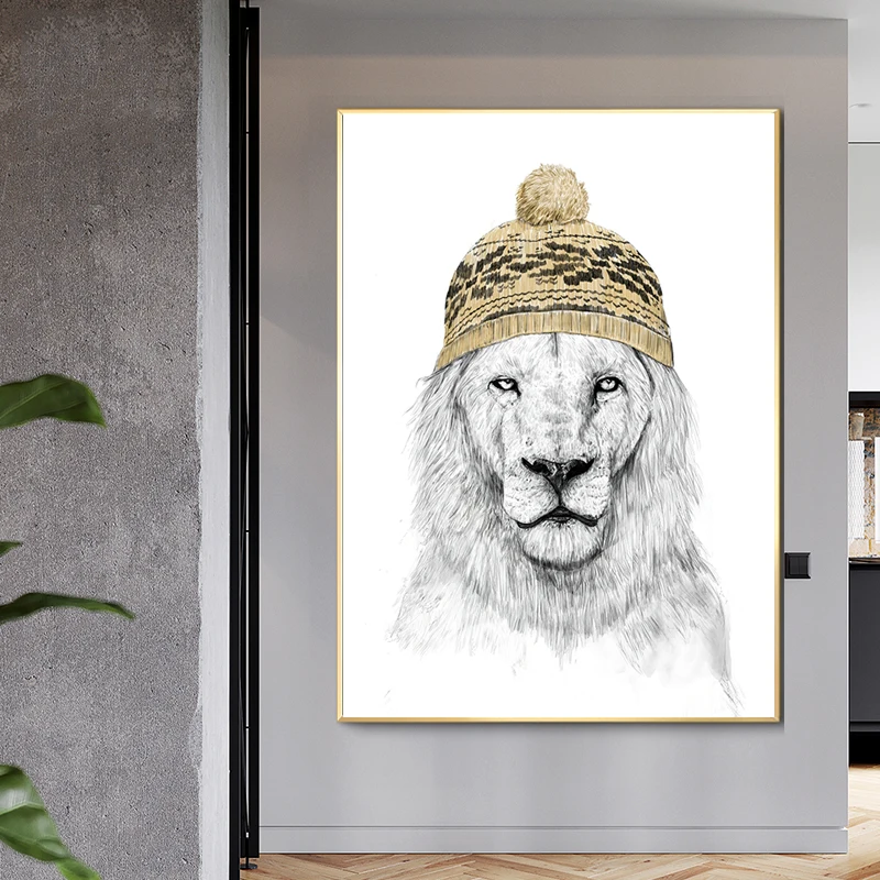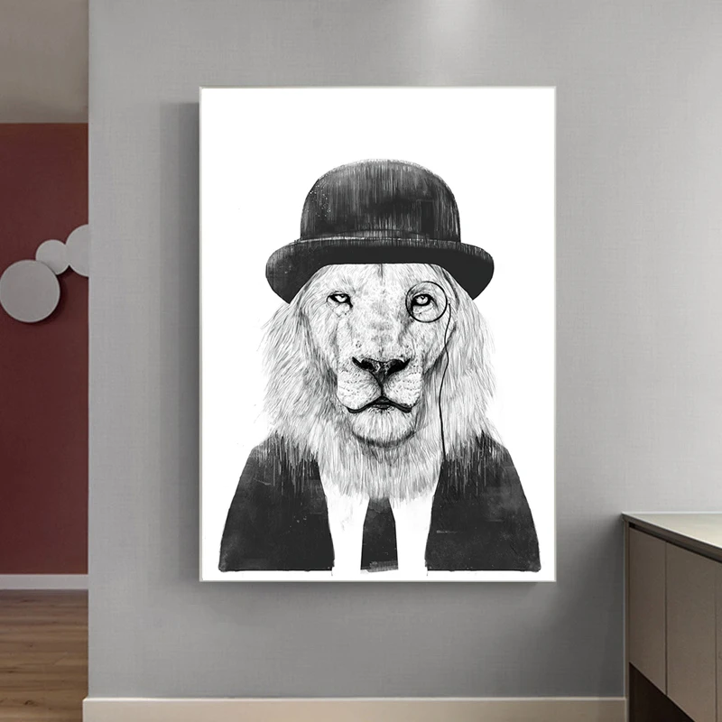 Черно-белый художественный Рисунок сэр, Лев, искусственная Цветочная шляпа, дикая фотография, современный декор для гостиной