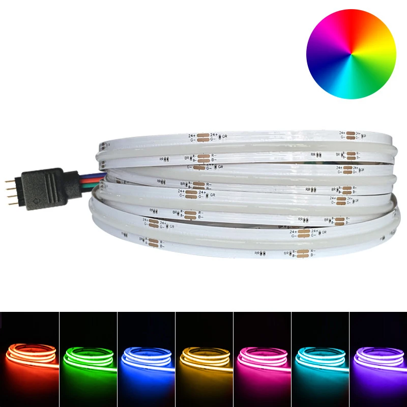 Светодиодная лента 5 м FCOB RGB 840 LED s 15 Втм Гибкая мягкая цветная лента COB Высокая плотность RA90 линейная Регулируемая DC24V Автомобильная комнатная лента