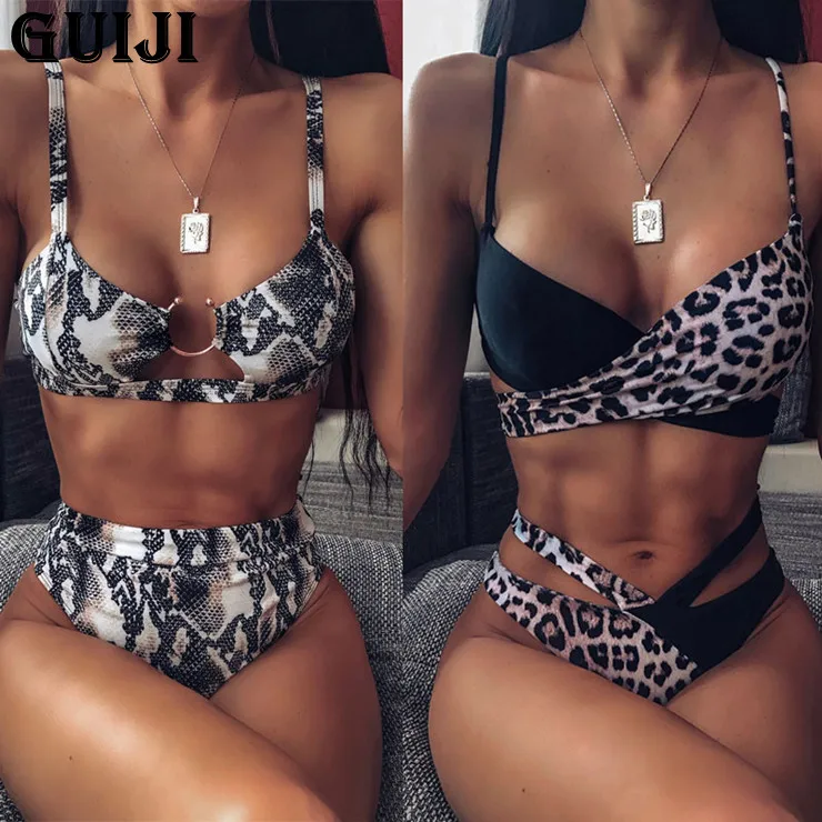 Guijiв наличии 2021 сексуальный женский комплект бикини с высокой талией и леопардовым принтом, купальник, женский топ-труба, бикини
