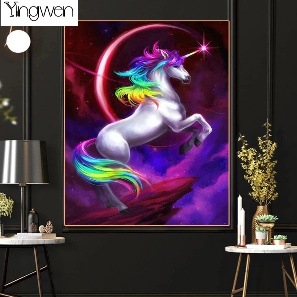 Набор для алмазной вышивки сделай сам, алмазная 5D картина с единорогом, полноразмерная, квадратная, круглая, с рисунком фэнтези, для домашнего декора