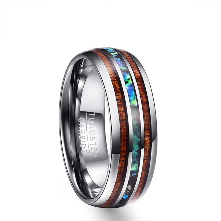 Мужские, женские, мужские, черные обручальные кольца, кольцо из вольфрама, Абалон, ракушка и Коа, деревянная инкрустация, форма купола, полированная, блестящая, ширина 8 мм, удобная посадка