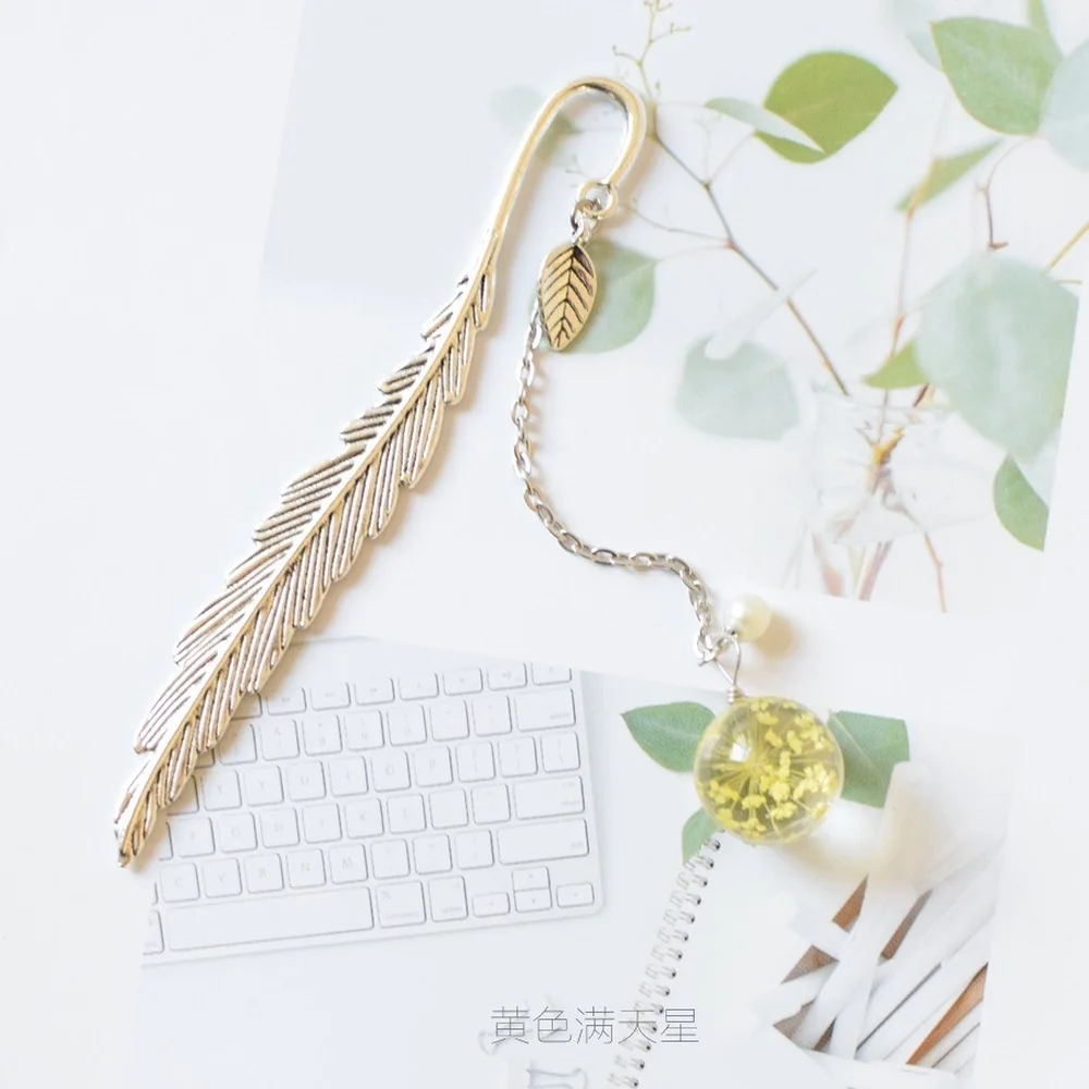 Сушенный цветочный образца Закладка для книги Винтаж перо Металл кн...