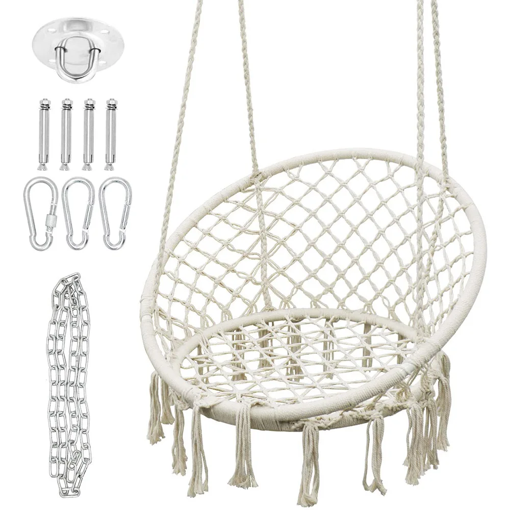Кресло-гамак с хлопковой веревкой для кемпинга, ручная работа, трикотажное комнатное кресло для взрослых, подвесное кресло с металлическими деталями