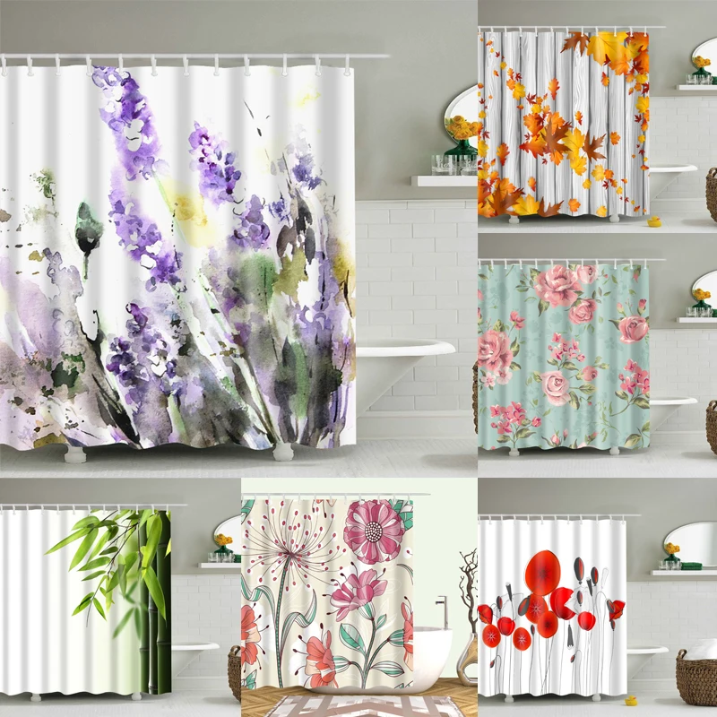 Красивый, красочный, цветочный занавеска для душа с цветочным принтом s Frabic, водонепроницаемая занавеска для ванной из полиэстера с крючками 180x180 см