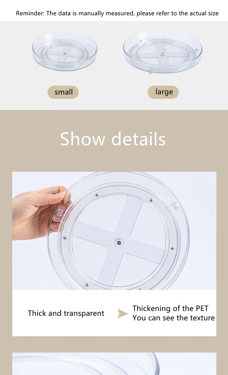 2. Вращение на 360 °: пластиковая коробка для хранения может поворачиваться на 360 °, и она может быть быстро доступна после одного вращения. Этот вид вращающегося ящика для хранения очень подходит для многих комнат в семье, сохраняя его чистым и аккуратным.