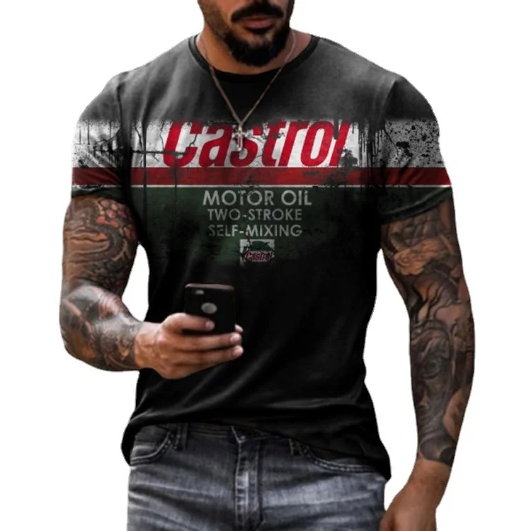 Футболка castrol мужская с коротким рукавом, винтажная Модная рубаш...