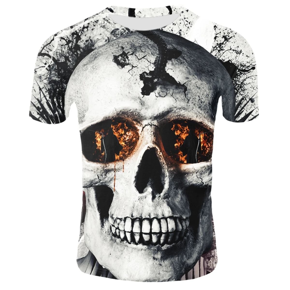 Мужская летняя футболка, новинка 2020, персональная забавная модная мужская футболка с 3d-рисунком черепа и ужасов, с коротким рукавом, в стиле хип-хоп