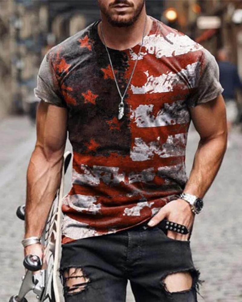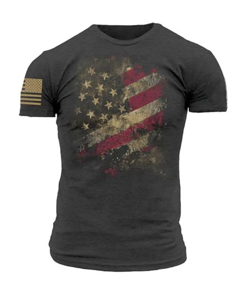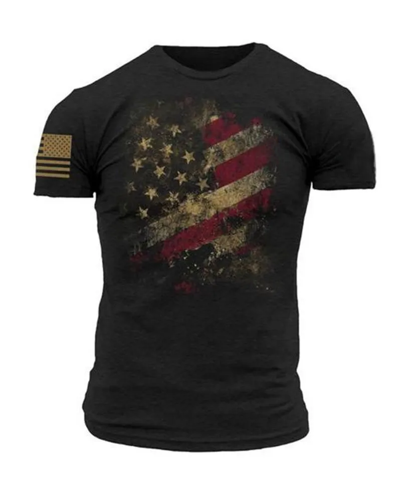 Одежда для гранж, уличная одежда, мужская футболка с принтом, США Футболка в стиле Инди с флагом, дышащая летняя футболка большого размера