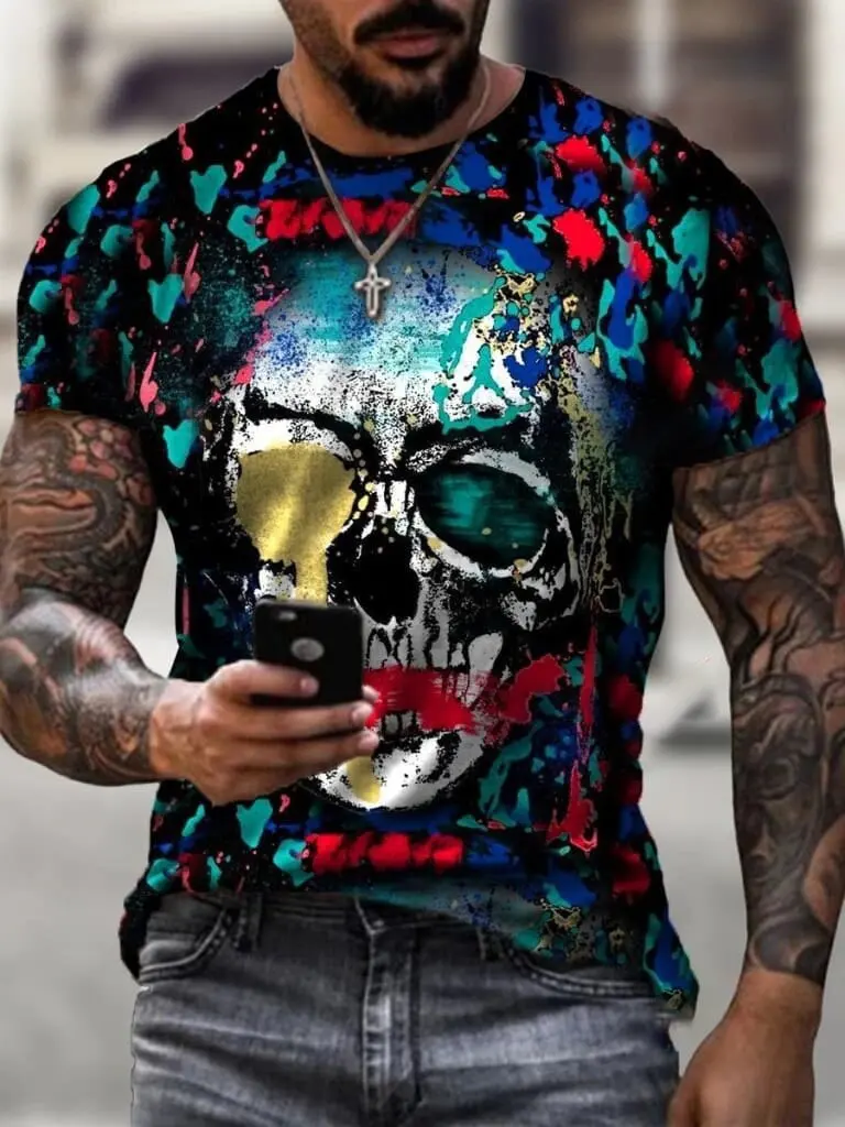 2021 Повседневная модная мужская футболка с 3D принтом, Повседневная Уличная футболка с коротким рукавом и принтом черепа
