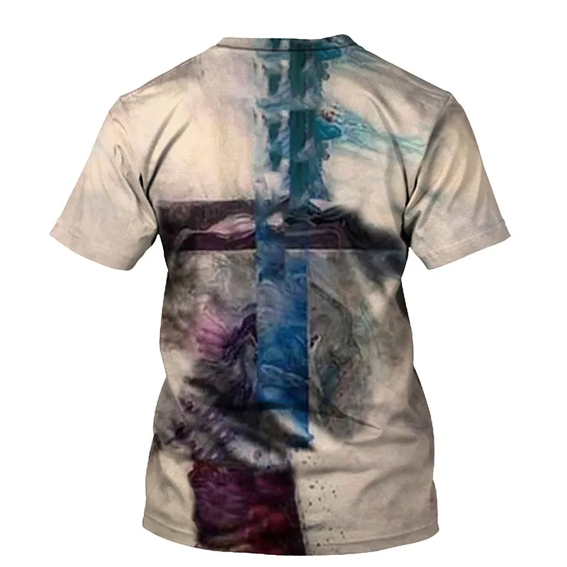 Футболка мужская с круглым вырезом, модная повседневная тенниска с 3D-принтом Креста, с изображением Иисуса, майка в христианском стиле с короткими рукавами, лето 2021