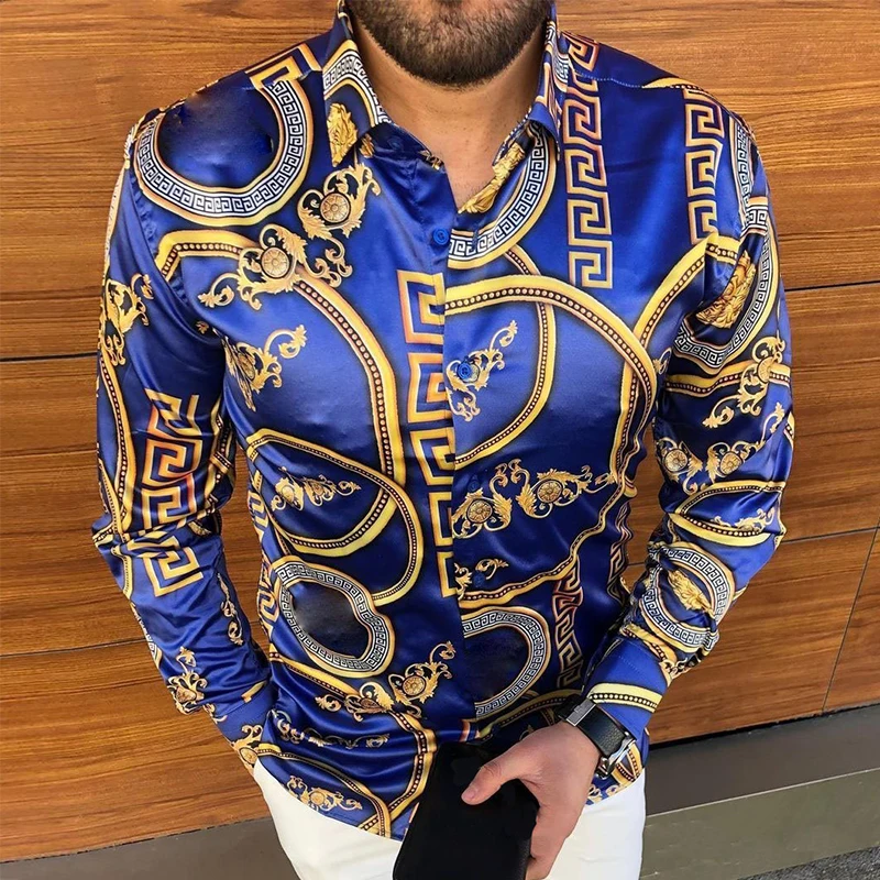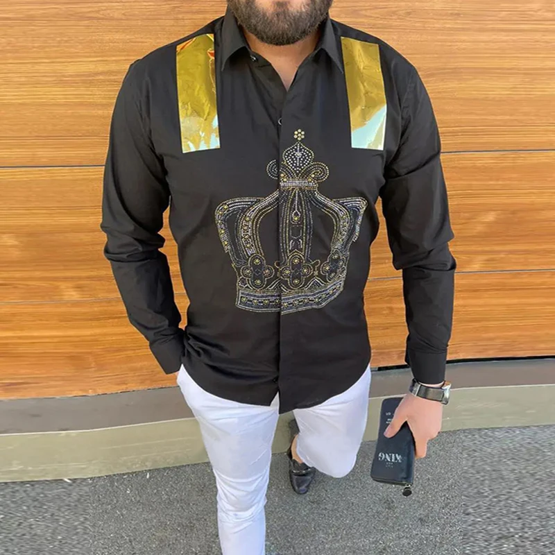 Рубашка мужская с длинным рукавом, на пуговицах и отложным воротником