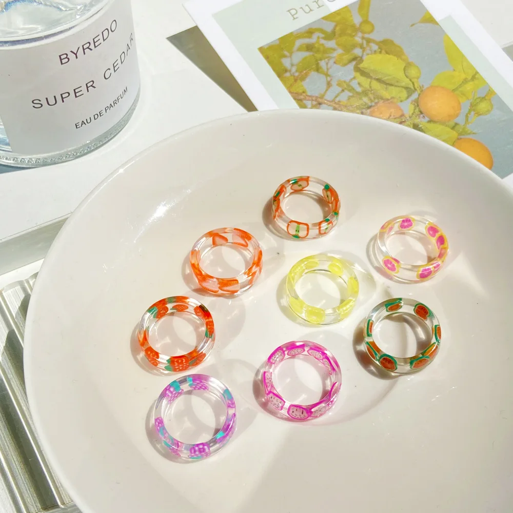 8 шт фрукты из смолы набор колец милый прозрачный пластик для колец...
