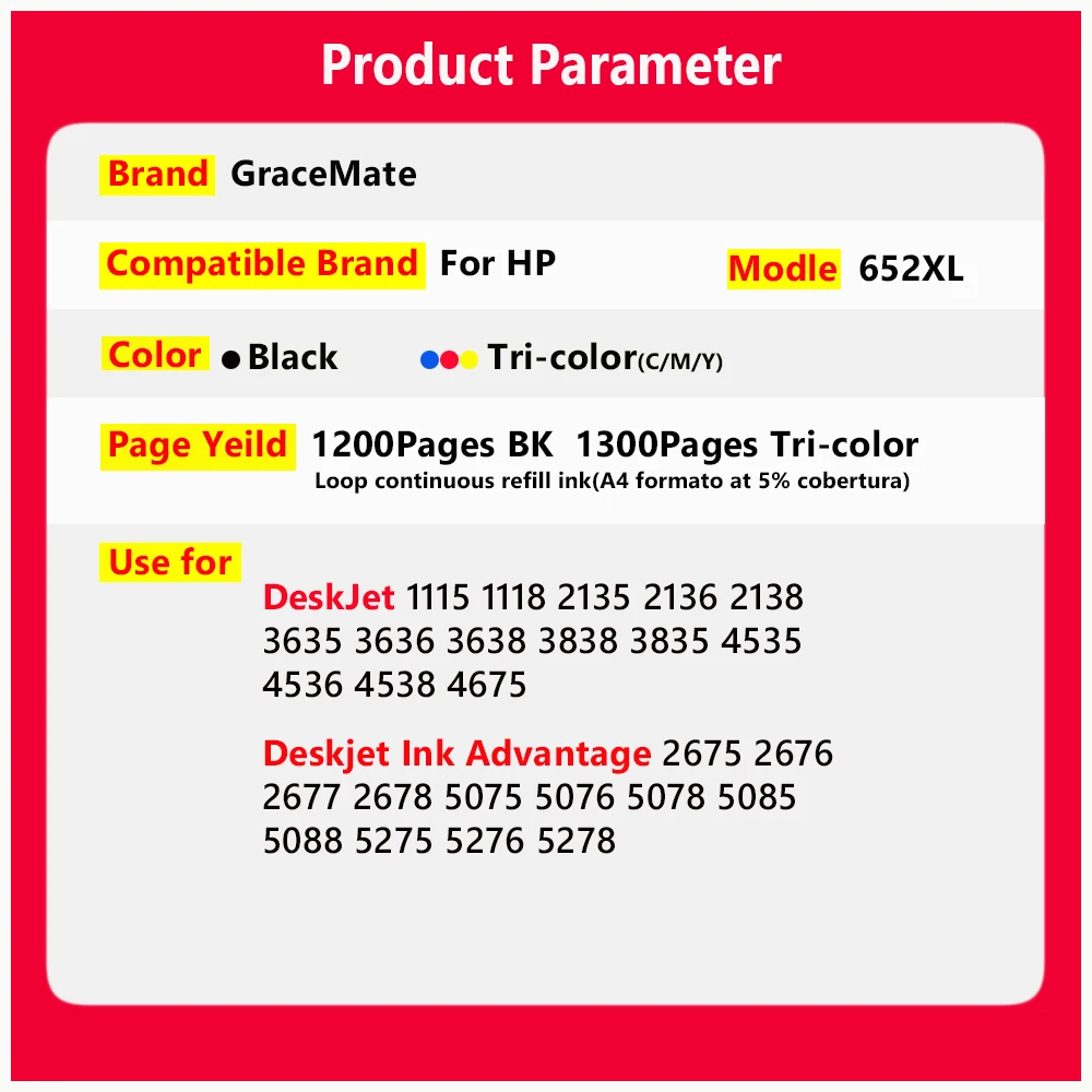 Бренд:Grace MateСовместимый бренд:Совместим с HP Модель: 652 652XL