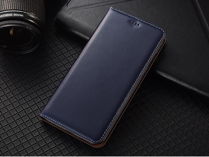 Magnet Natural Genuine Leather Skin Flip Wallet Book Phone Case Cov...