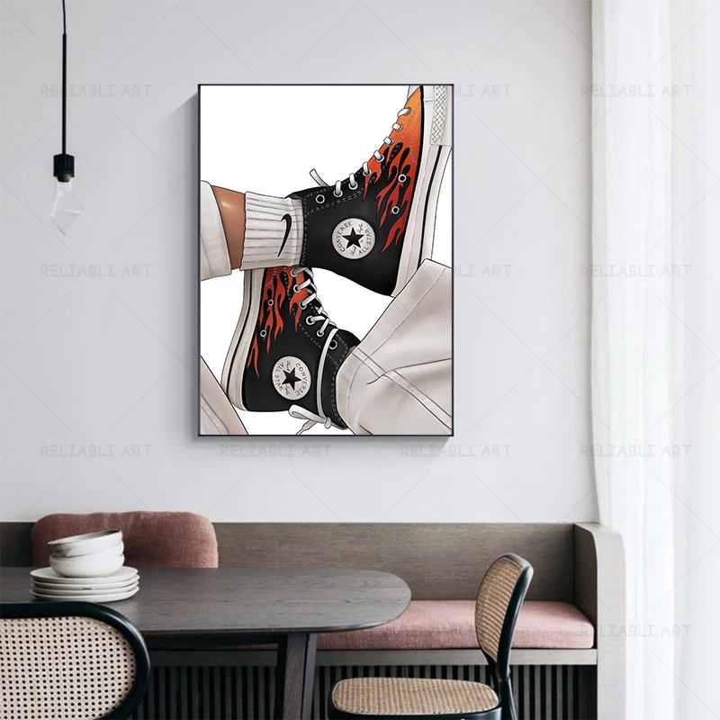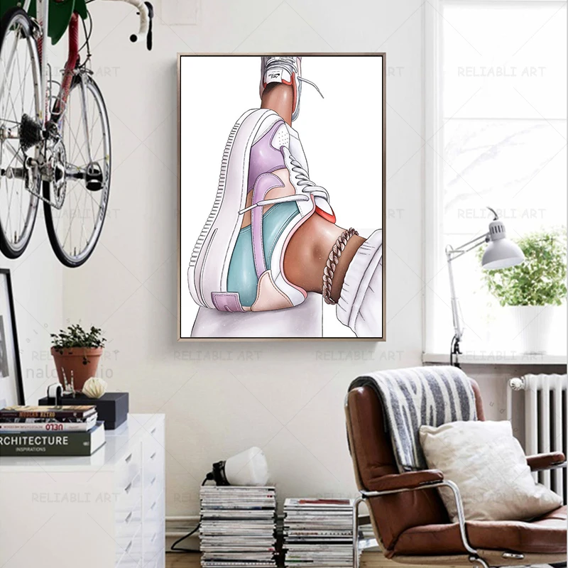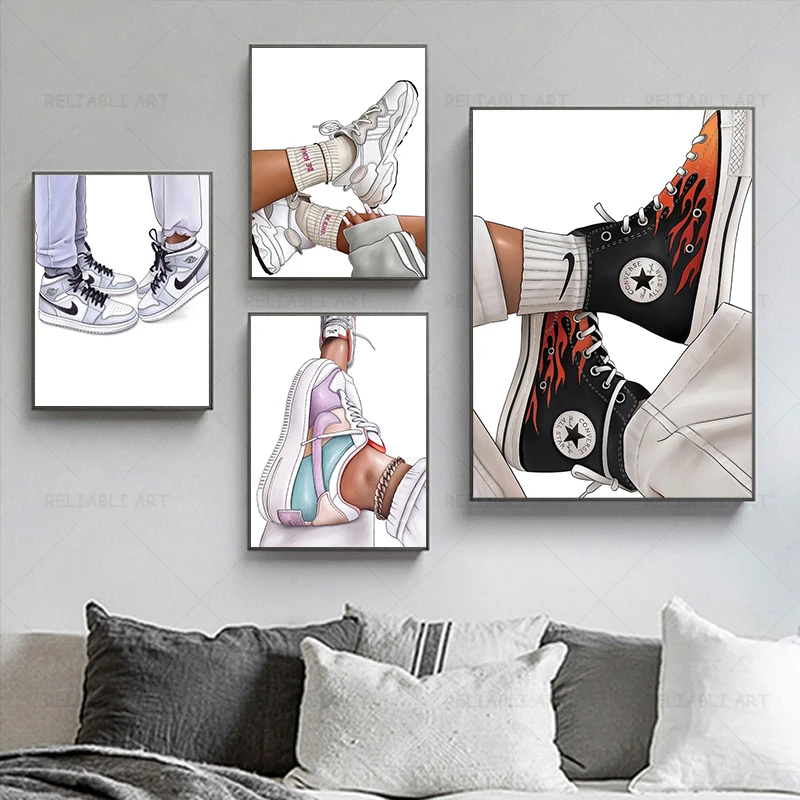 Современная спортивная обувь, парусиновая живопись, кроссовки, постеры и принты, мультяшная нога, картинки для тренажерного зала, детская комната, домашний декор, Cuadros