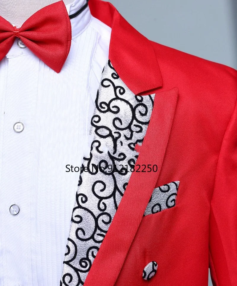 Мужской Жаккардовый костюм с лацканами, белый, черный, красный, сценический костюм певицы, мужской свадебный смокинг для жениха, выпускного вечера, мужской костюм (куртка + брюки)