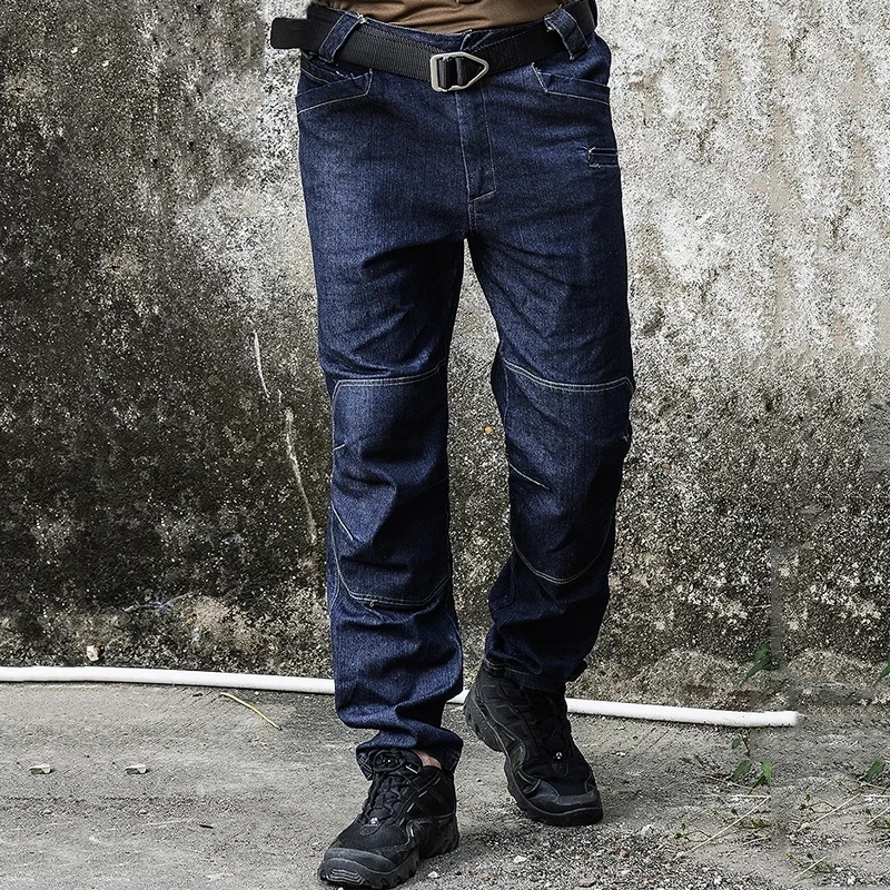 Джинсы мужские прямые, брюки из денима в стиле милитари, Тактически...