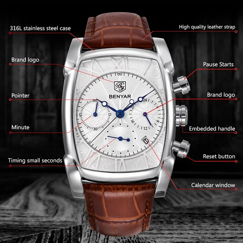 Часы наручные мужские кварцевые, классические, с 3 небольшими циферблатами, с датой и 6 стрелками, 2021