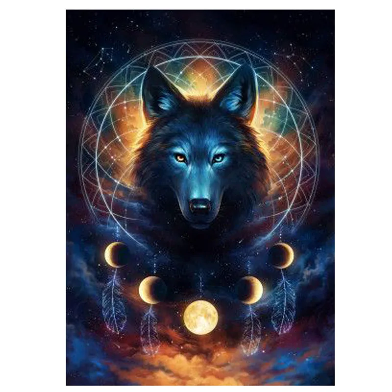 Ловец снов, волк, алмазная живопись сделай сам, волк, животное, алмазная вышивка, Ловец снов, волк, вышивка крестиком стразы, мозаичная живопись