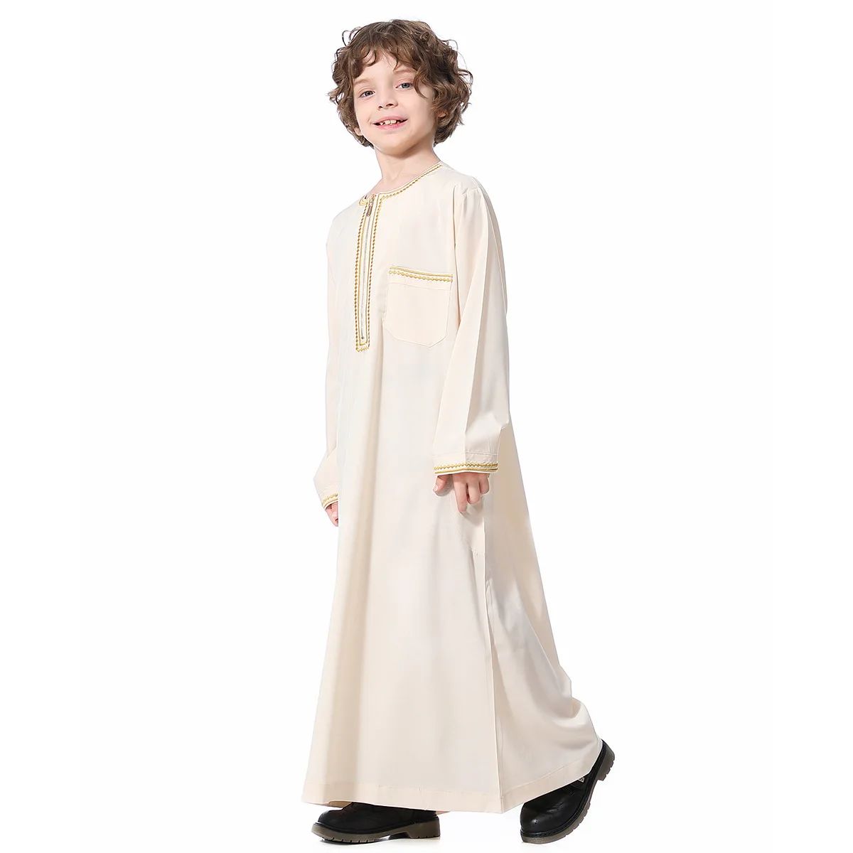 Мусульманское подростковое длинное платье для мальчиков Abaya Jubba tobe, мусульманское детское платье-кафтан, Вышитый Кафтан, служба поклонения Саудовской Аравии