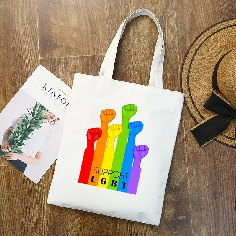 Холщовая Сумка-тоут с принтом для лесбиянок с изображением ЛГБТ-радуги, женская наплечная сумка, большая емкость, дамские сумки для покупок, Студенческая Холщовая Сумка