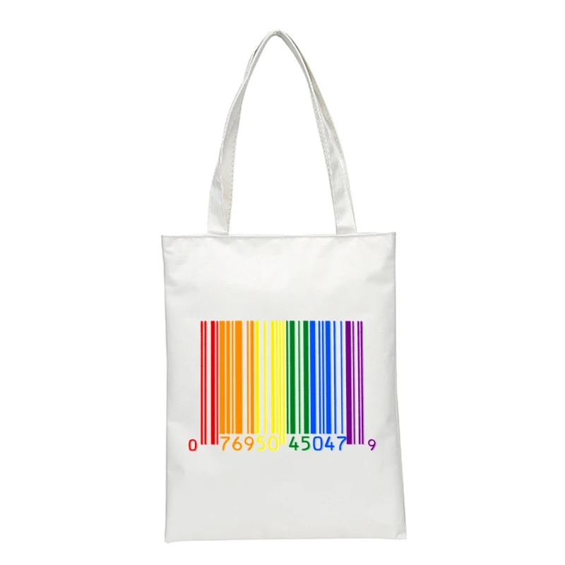 Сумка-шоппер для женщин, многоразовая, ЛГБТ, с радужным принтом