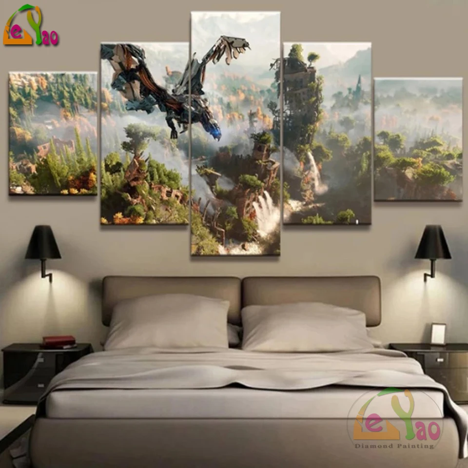 5 шт./компл., горизонт Zero Dawn Game Canvas, полный квадратный круглый 5D DIY алмазная живопись, 3d, алмазная вышивка крестиком, мозаика,