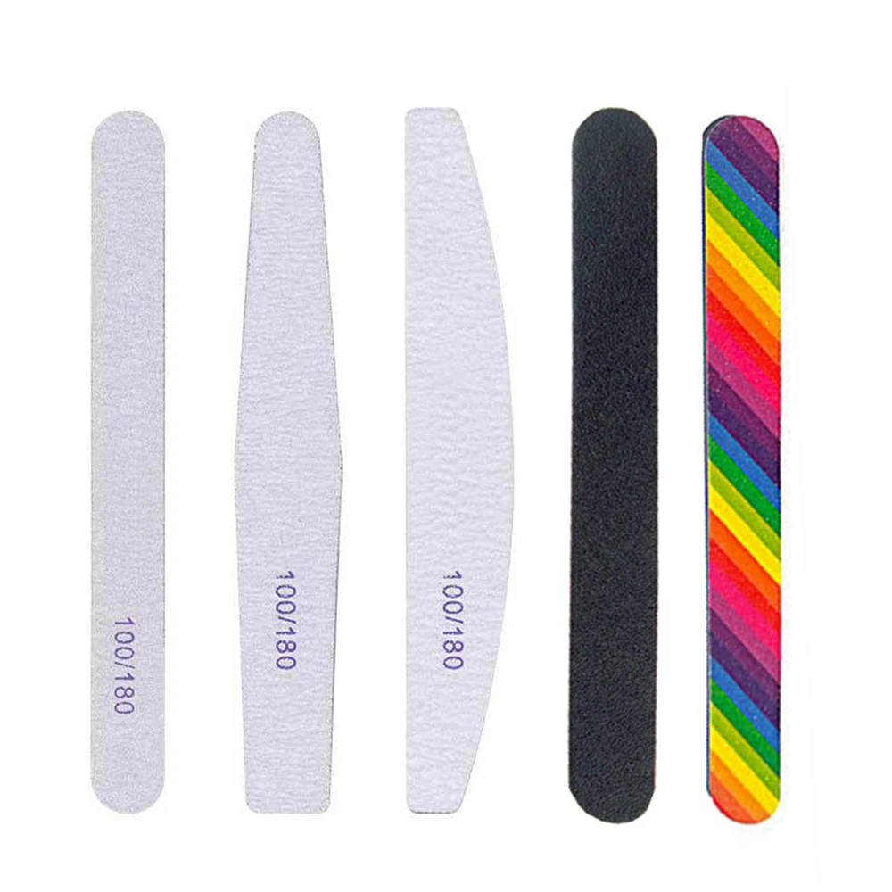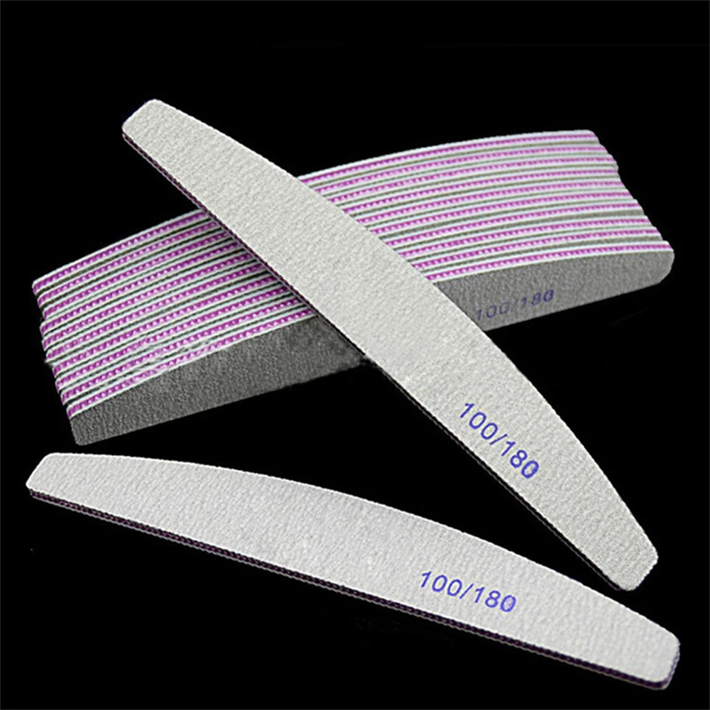 Пилки для ногтей двухсторонний буфер 100/180 наждачная бумага с полулуной цветной пилкой для ногтей полировальный триммер для профессиональных маникюрных инструментов