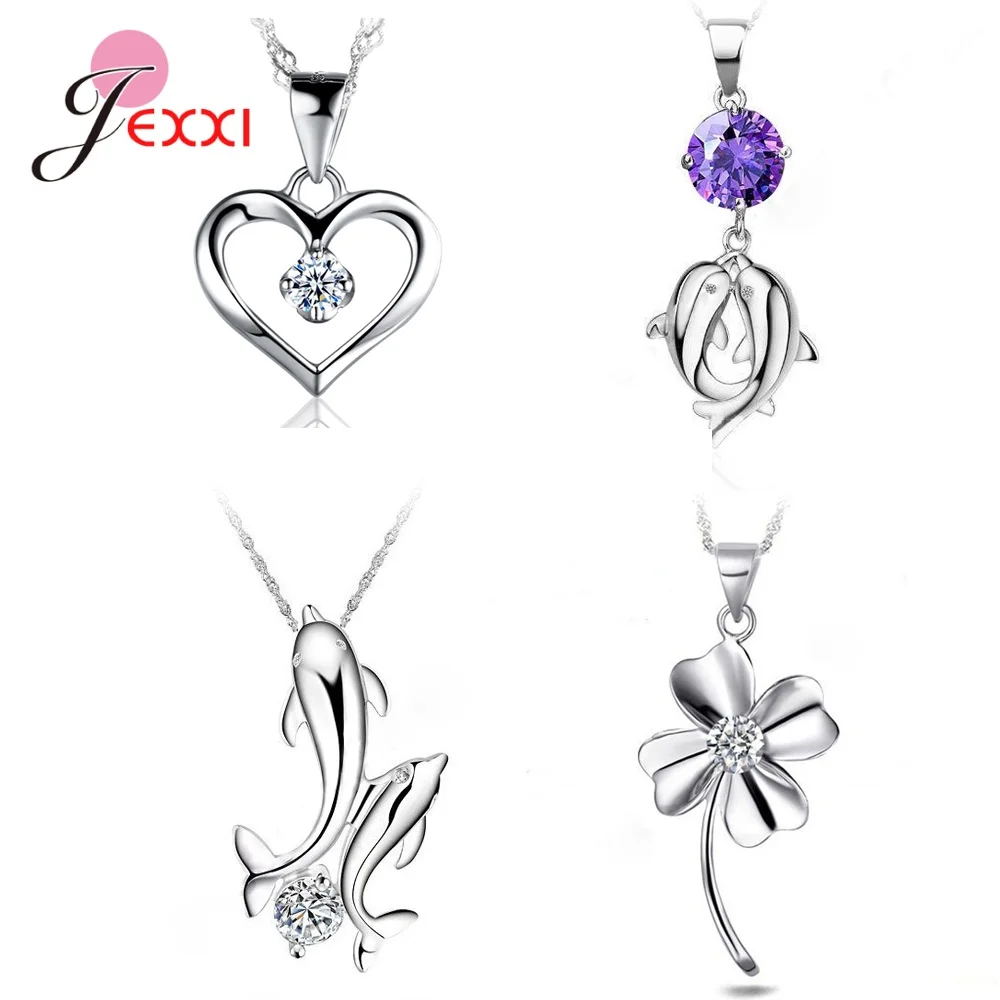 Колье из серебра 925 пробы с блестящим кристаллом и жемчугом из циркония, колье с животным сердцем, цветком, колье с буквой, колье с подвеской-цепочкой, ожерелье с кулоном