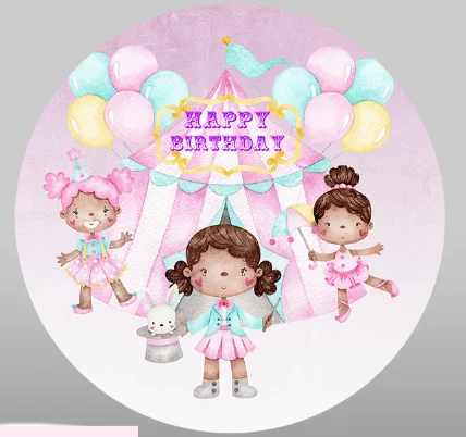 Круглый тканевый фон для фотосъемки с изображением розового цирка на день рождения