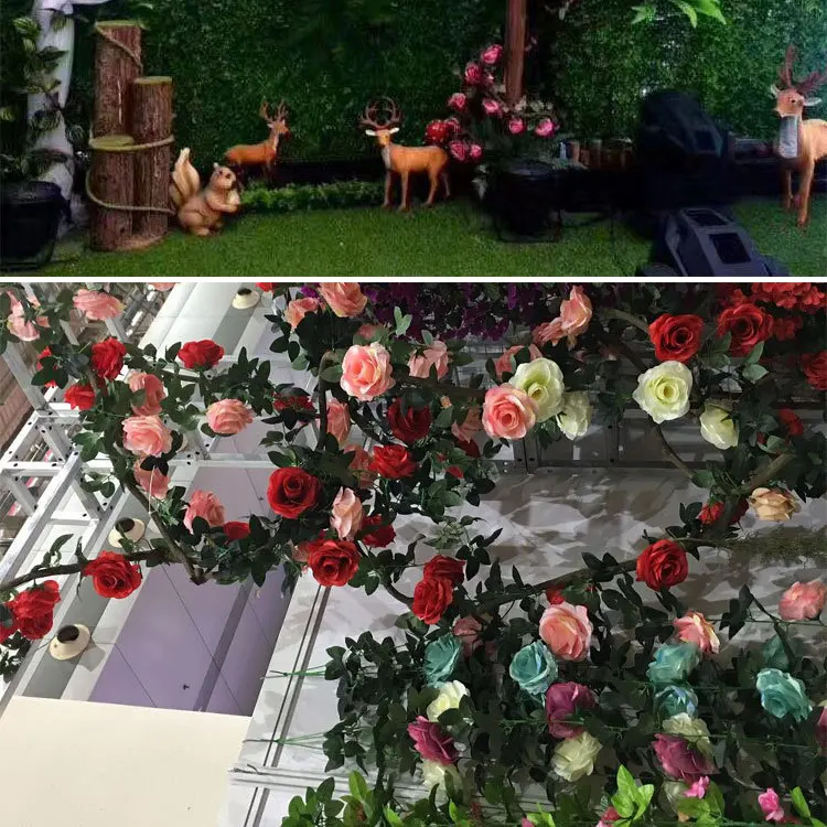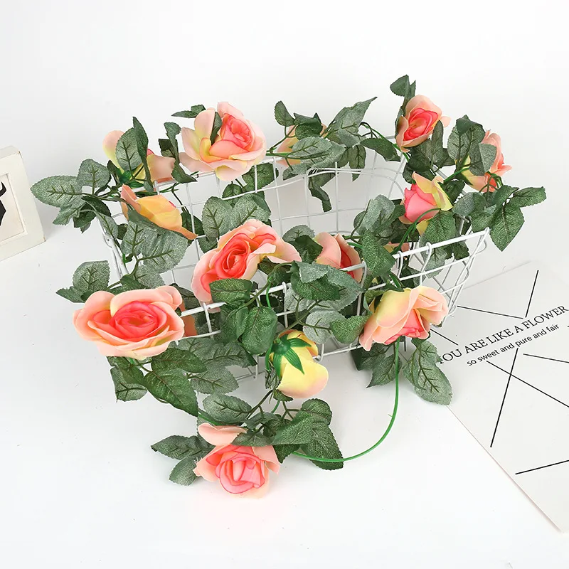 Недорогая декоративная цветочная гирлянда из шелковая искусственная Роза виноградных листьев, 45 голов, 1 шт., ротанг, искусственные
