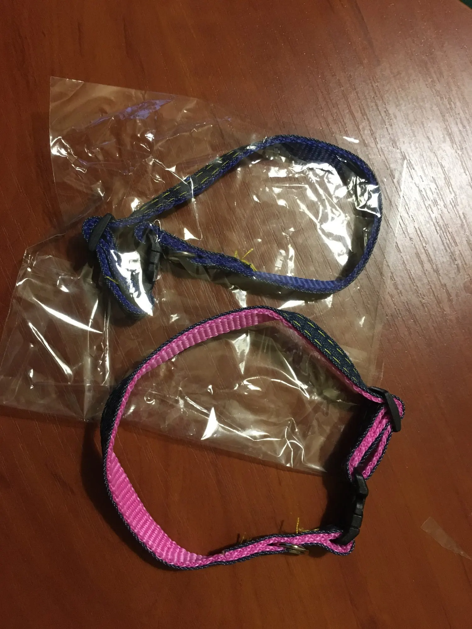 Ожерелье для собаки, состоящей из полиэфирной ленты и ткани из шерсти, швы с хорошей отделкой, пластиковые пряжки и металлический кольцо.