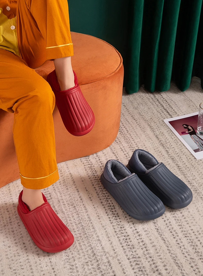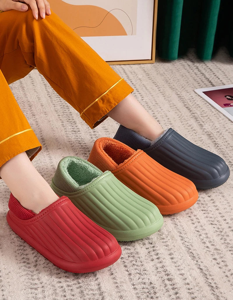 Водонепроницаемые хлопковые тапочки на каблуке, женские зимние плюшевые теплые тапочки на толстой подошве для пар, домашняя и уличная одежда из ЭВА для мужчин