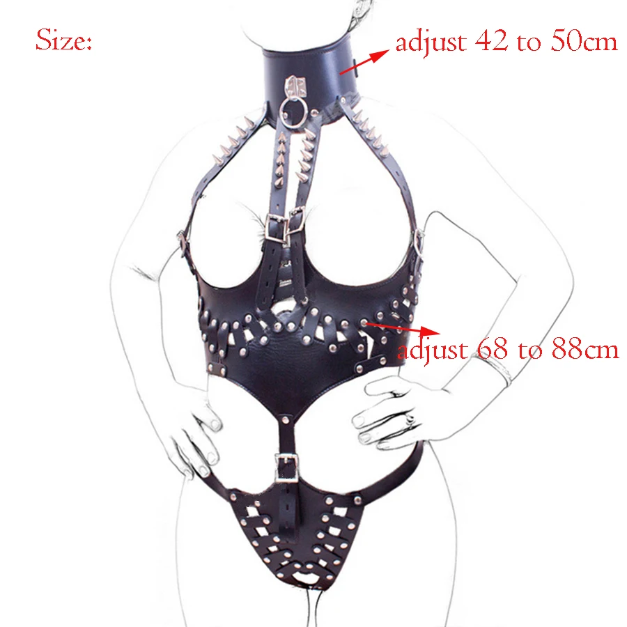 Женский открытый бюстгальтер, кожаный комбинезон с наручниками, воротником на шею, БДСМ, упряжь для тела раба, эротический костюм на руку секс-игрушки для сдерживания