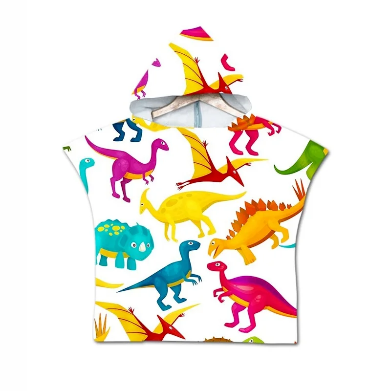 Банное полотенце с капюшоном, из микрофибры, с принтом динозавра