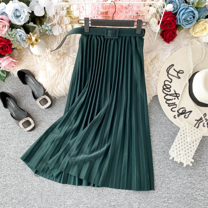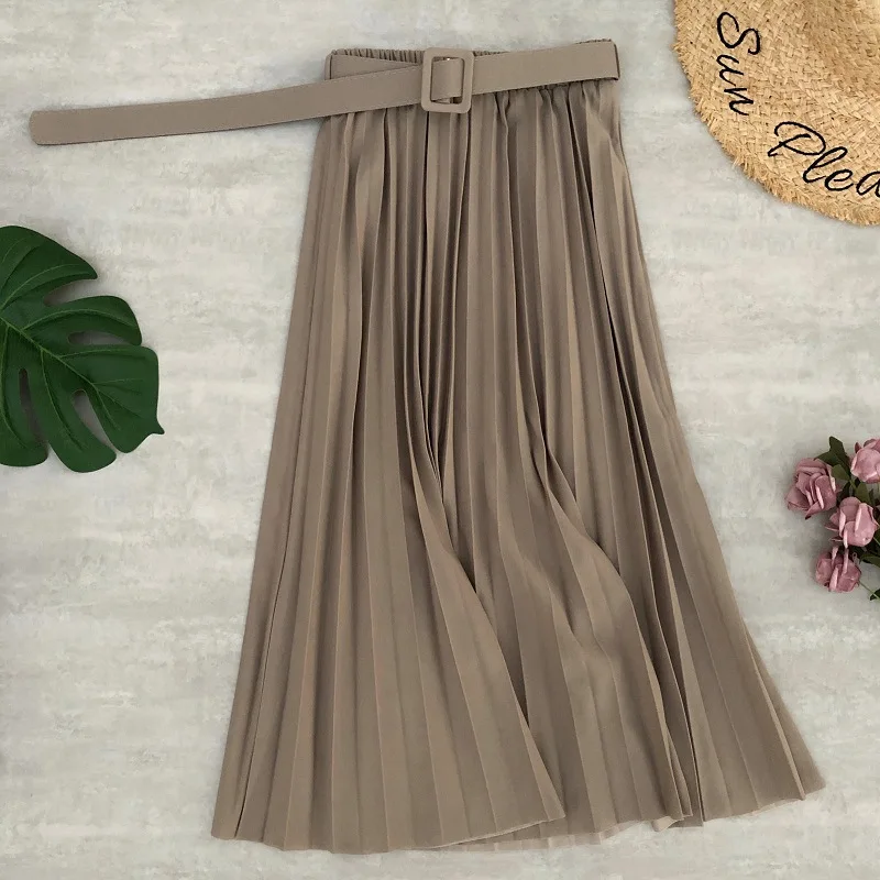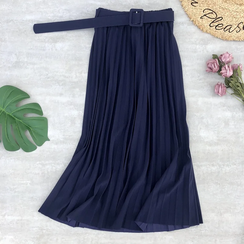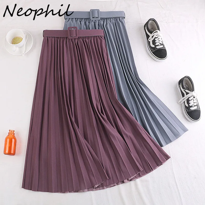 Весенняя женская плиссированная юбка Neohil 2022, винтажная трапециевидная Юбка-миди с высокой талией, черная Повседневная Женская Расклешенная юбка S21706