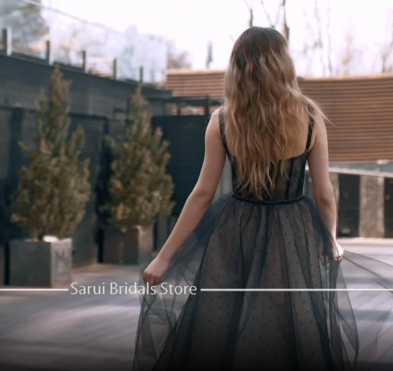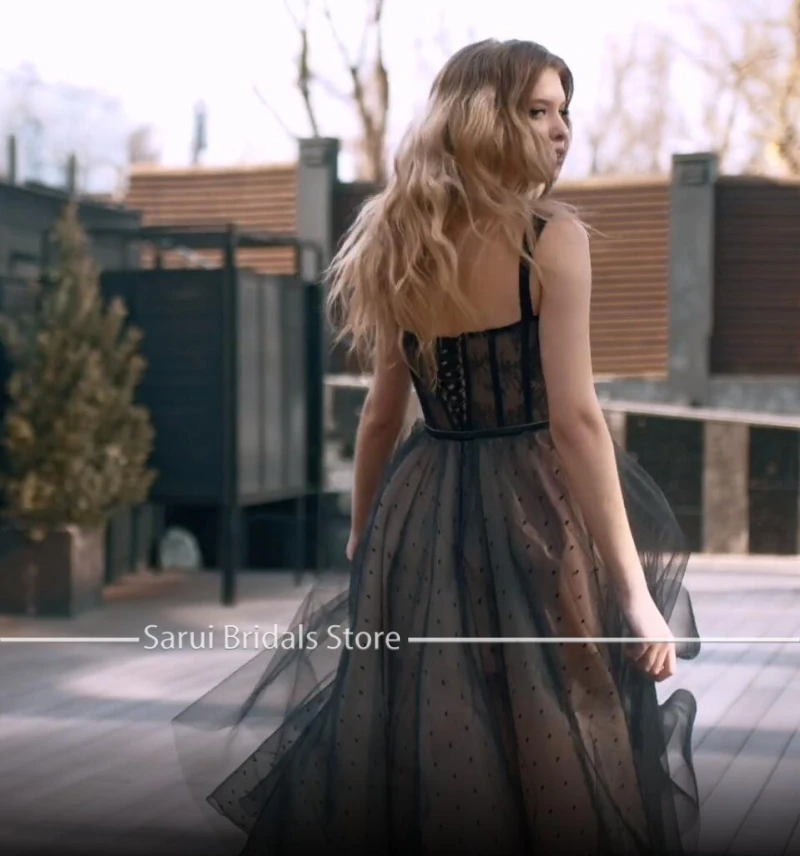 Модные черные тюлевые Короткие вечерние платья в горошек для выпускного вечера на тонких бретельках корсет для выпускного вечера вечерние платья 2021