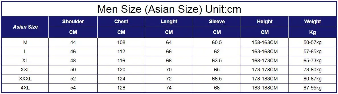 Мужской размер (Азиатский размер) Единица измерения: см